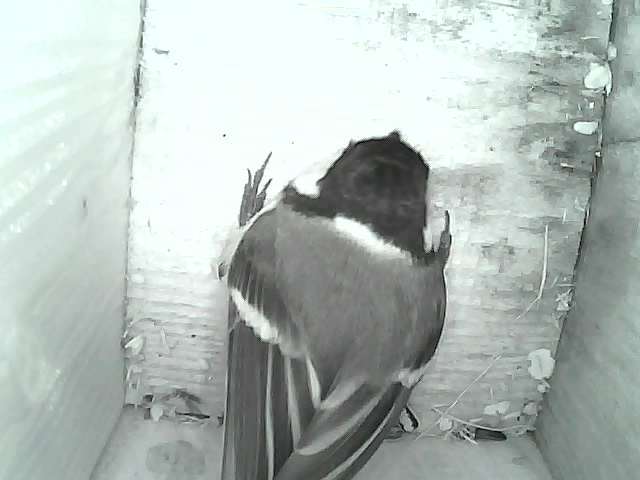 Ab Anfang Februar schaute ab und zu mal eine Meise in unseren Nistkasten - auf der Suche nach einem Nistplatz. Eine Kohlmeise hat sich dann Ende März dazu entschlossen, in unseren Kasten einzuziehen!