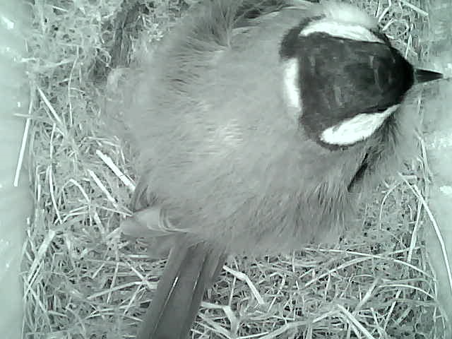 Am 02.04.2015 übernachtet das Kohlmeisenweibchen das erste Mal in seinem Nest.